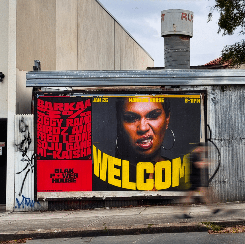 Creative innovation company R/GA is supporting Blak Powerhouse for its fourth year by developing the 2026 visual identity alongside We Are Warriors founder, Nooky, and under the guidance of Wiradjuri and Ngiyampaa artist Matthew “Melnunnie” Brettschneider. The design, spanning posters, signage, and social media, are rooted in the ancestral visual language of Brettschneider’s Country and are built upon a specific curvature derived from symbols representing a person sitting and a collective gathering.